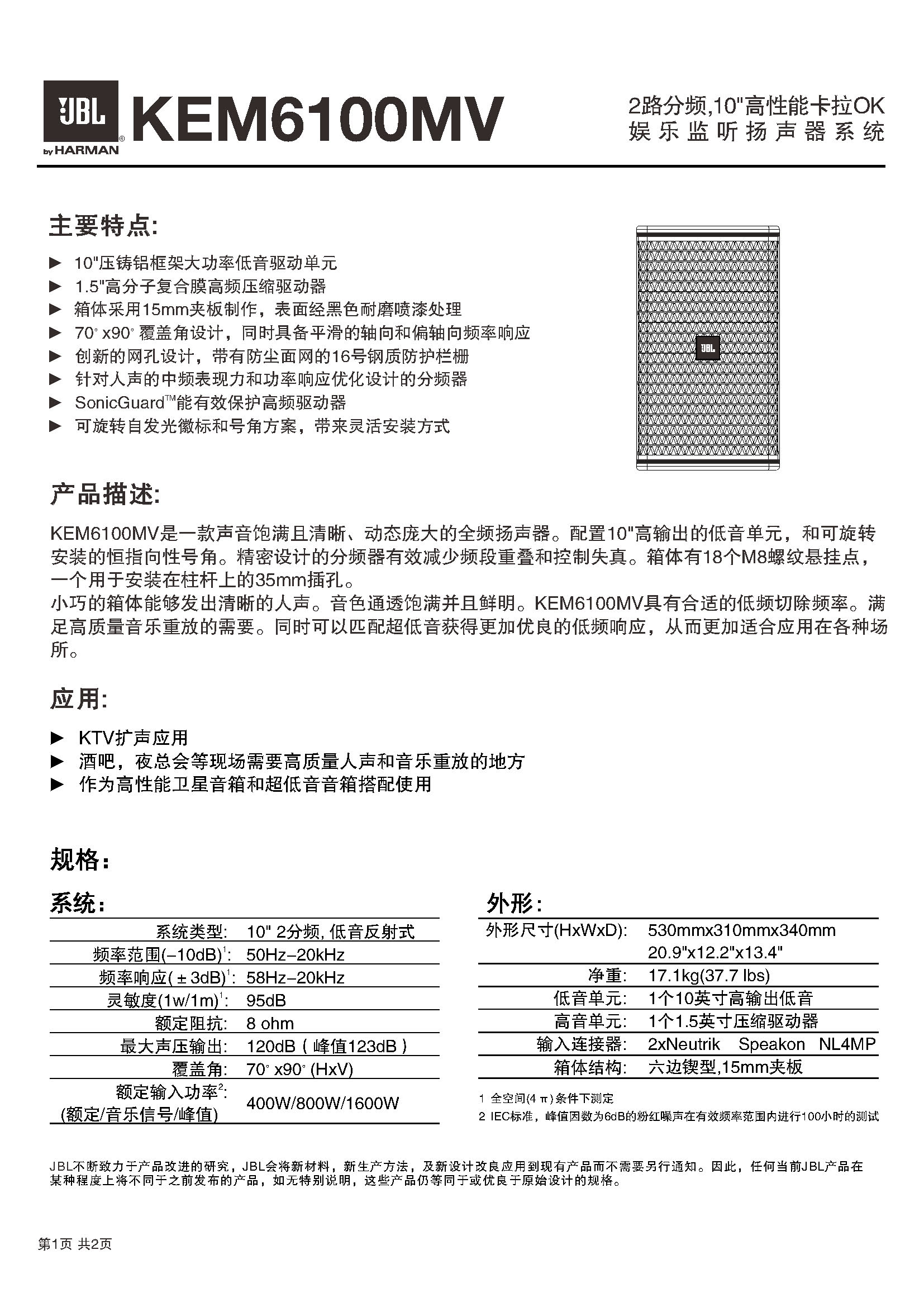 目前JBL新品,KEM6100MV、KEM6120MV
